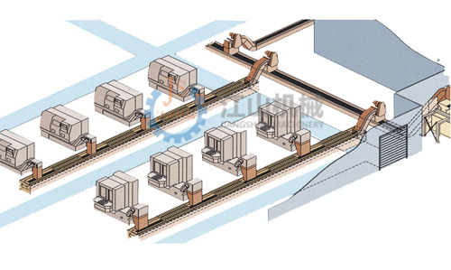 The centralized conveyor is a main conveyor and a number of feeders in a workshop. The chips generated by the machine tool are transported by the feeder conveying device to the main conveying device, and then transported by the main conveying device to the centralized processing of the chips.